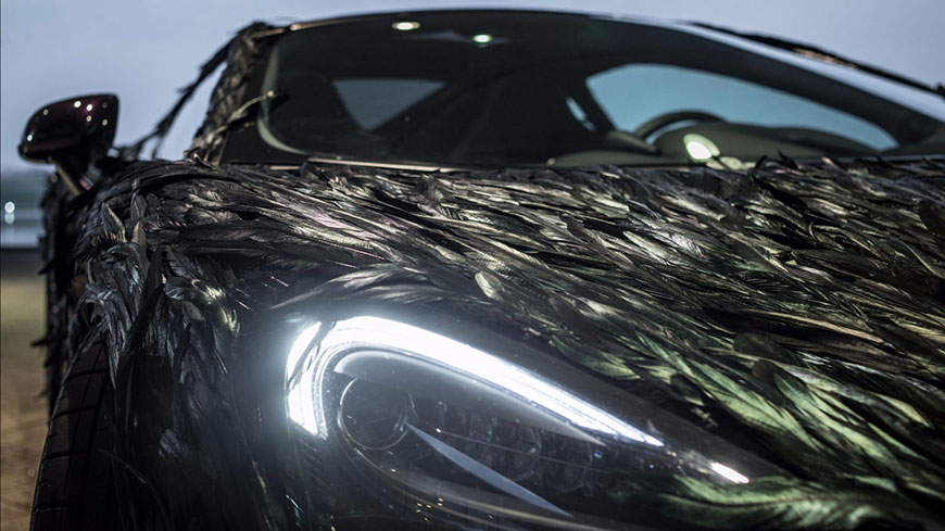 "Inginerii și designerii noștri au fost mereu inspirați de natură cu scopul de a crea cele mai ușoare și aerodinamice forme" a declarat Robin Crain, Specialist la McLaren Automotive. "Într-o zi mergeam pe jos pe lângă campusul nostru de dezvoltare și priveam cum un stol de păsări se învârteau deasupra lacului, am luat o pană de jos și am pus-o pe mașină... Și după o ședință la MSO am creat Învelișul din pene" a mai spus Crain.