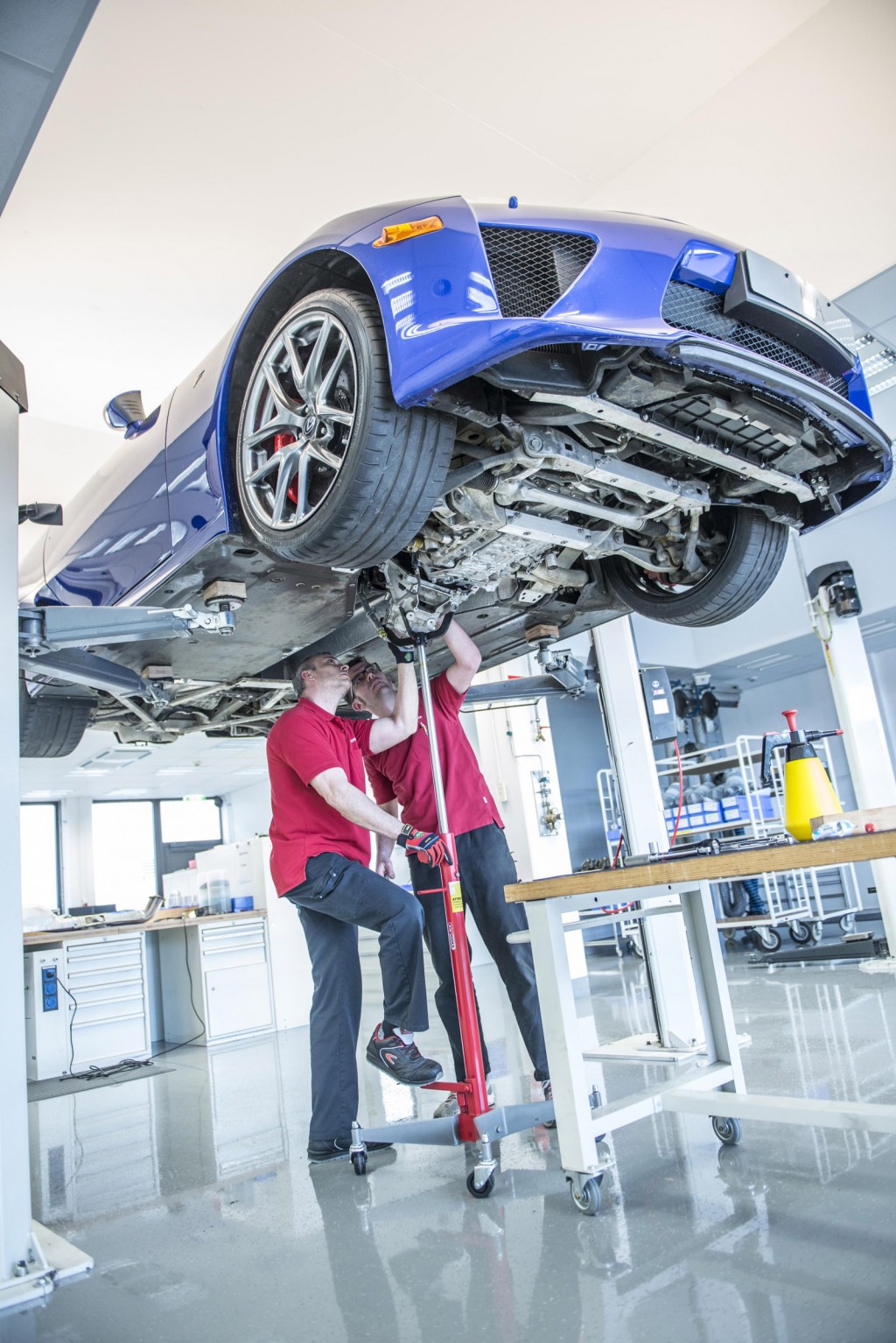 “Tratăm fiecare Lexus LFA ca pe o maşină care participă în cursa de la Le Mans. Principiile de bază de service sunt acelaşi ca pentru toate modelele Lexus, dar este mult mai dificil să facem unele lucruri şi să obţinem acces la anumite piese, ceea ce ne face să tratăm LFA mai mult ca o maşină de curse în ceea ce priveşte service-ul”, a declarat Peter Dresen, cel care conduce centrul TMG. Şi atenţia Toyota faţă de posesorii de Lexus LFA nu se opreşte aici. Aceştia nu sunt obligaţi să ducă maşina până la Koln de fiecare dată când aceasta are nevoie de o inspecţie. Dresen şi echipa sa se deplasează, împreună cu toată aparatura necesară, la marii dealeri din Europa.