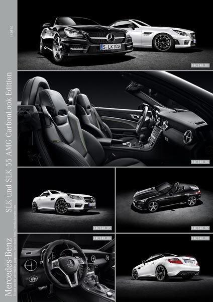 Ediţia specială Mercedes SLK CarbonLOOK vine cu un kit de caroserie AMG, care include bări modificate şi praguri laterale redesenate. Modelul mai beneficiază de asemenea de frâne mai mari, o suspensie sport reglată pentru performanţe optime şi jante de aliaj titanium gri cu cinci spiţe. Interiorul în două nuanţe beneficiază de inserţii de carbon şi scaune sport îmbrăcate în piele Nappa, care sunt încălzite şi dotate cu sistemul AIRSCARF de încălzire a gâtului. Pachetul CarbonLOOK va fi disponibil pe mai multe modele, iar preţurile încep de la 6.426 euro.