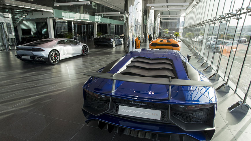 Poziționat pe Strada Sheik Zayed, ieșirea 41, Dubai, centrul are o clădire principală cu trei etaje unde sunt prezentate ultimele supermașini ale brandului. Lamborghini își extinde gama de modele și intenționează să își dubleze vânzările odată cu lansarea noului său SUV până în 2018, iar acest showroom și service-ul aferent în suprafață totală de 1.800 mp reflectă aceste planuri.