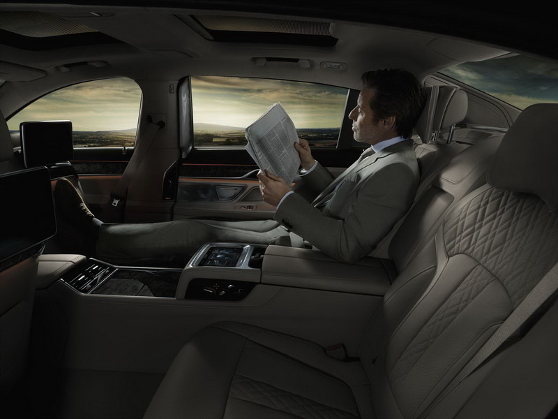 O altă funcție care asigură pasagerilor călătorii de neuitat este opţiunea de lumini Ambient, care include acum Covorul de lumini Welcome, care oferă o iluminare atractivă a zonei din jurul uşilor. O altă particularitate unică este pachetul Ambient pentru versiunea cu ampatament lung a noului BMW Seria 7, care inundă compartimentul spate într-o lumină ambientală provenită din sursele de lumină dispuse vertical în montanţii B. Versiunea cu ampatament lung a noului BMW Seria 7 va fi disponibilă şi cu acoperiş de sticlă Sky Lounge Panorama, care de asemenea este o dotare unicat în segmentul sedanurilor de lux. Lumina emisă de modulele LED montate pe lateral este distribuită uniform pe suprafaţa de sticlă, unde luminează un model imprimat care creează imaginea unui cer înstelat. Pentru acest efect se folosesc în total 15000 LED-uri. O altă opţiune ce poate fi comandată pentru accentuarea stării de bine la bordul automobilului este pachetul Ambient Air, care ionizează şi parfumează aerul. În prezent este disponibilă o selecţie de opt arome. Sunetul este asigurat de un sistem surround Bowers & Wilkins Diamond de 1400 W, care a fost reglat special pentru interiorul noului BMW Seria 7.