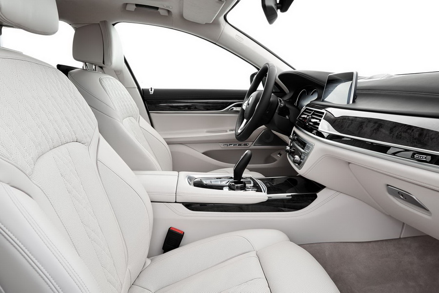 Interiorul nu diferă nici el foarte mult față de precedenta versiune, dar este înțesat de inovații tehnologice, luxul fiind cuvântul cheie. Surpriza noului Seria 7 este monitorul sistemului de operare iDrive care vine în premieră sub forma unui Touch Display. Sistemul de control clasic, cu controller rotativ, butoane rapide şi butoane favorite este şi acesta disponibil pentru a putea asigura operarea sistemului într-un mod care nu distrage atenţia de la condus. O altă premieră a sistemului iDrive este controlului BMW prin gesturi. Mişcări mâinii înregistrate de un senzor 3D amplasat în plafon, în zona oglinzii, şi oferă o modalitate extrem de intuitivă şi uşoară de operare a funcţiilor de infotainment. Gesturile pot fi utilizate pentru o serie de funcţii, inclusiv ajustarea volumului audio şi pentru a accepta sau a respinge apelurile telefonice. De asemenea există opţiunea de a utiliza anumite gesturi pentru funcţii alese individual. O altă noutate este suportul de smartphone integrat în consola centrală, care permite încărcarea prin inducţie, wireless, a telefonului mobil - pentru prima dată într-un automobil.