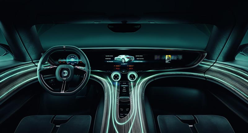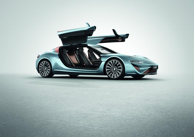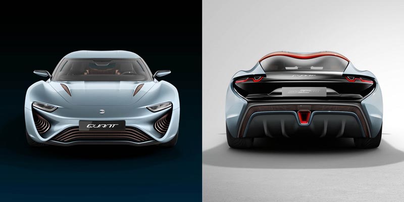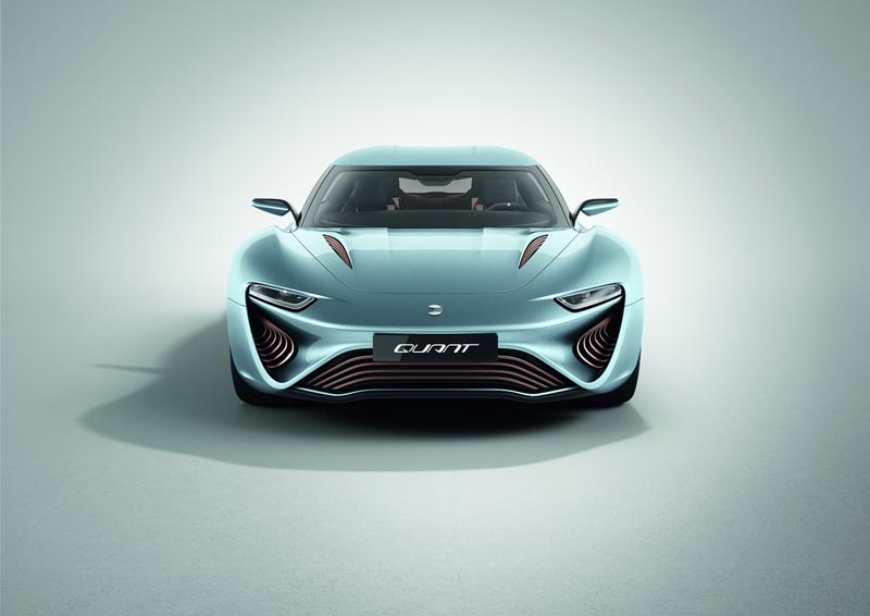 Conceptul se numeşte QUANT e-Sportlimousine şi are un design extrem de atrăgător, cu forme fluide şi un aer sportiv. Conceptul este vopsit într-un albastru „chrystal lake”, aşa cum a fost botezată culoarea, are un parbriz foarte înclinat, un plafon cu două „bule” care coboară spre partea din spate şi o lunetă unică. Modelul mai beneficiază de jante de aliaj de 22 de inch, uşi cu deschidere verticală şi accente de cupru. Interiorul premium este şi el unul foarte reuşit şi vine într-o configuraţie 2+2. Putem regăsi piele, inserţii de lemn şi cupru, dar şi un display masiv de 1.25 metri lăţime şi 16 centimetri înălţime. Elementul care atrage cel mai mult atenţia este însă consola centrală care se continuă pe toată lungimea interiorului.