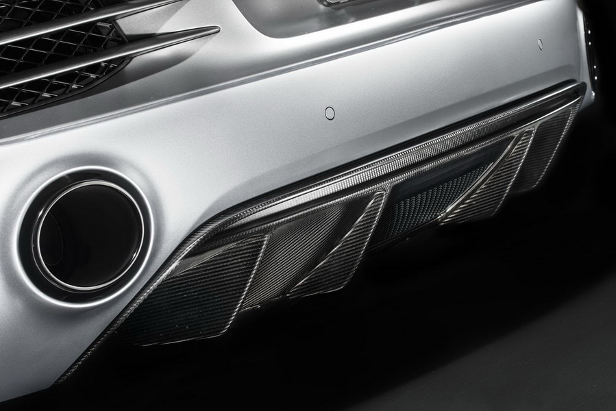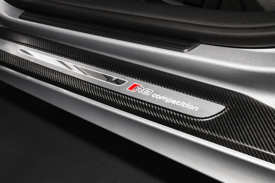 Exteriorul este şi el unul foarte spectaculos, deşi nu se abate foarte mult de la „clasicul” R8. Inspirat de R8 LMS, noul R8 Competition beneficiază de mai multe elemente de caroserie din fibră de carbon mat, printre care spoiler-ul faţă, capacele oglinzilor, „lamele” laterale, deflectorul spate sau spoilerul spate. Modelul mai vine cu frâne ceramice din carbon, jante de aliaj vopsite negru lucios sau un sistem de evacuare sport.