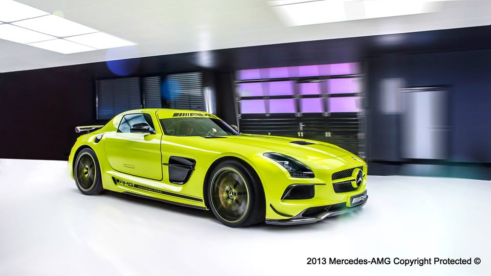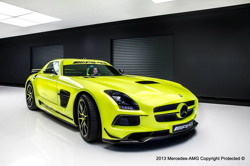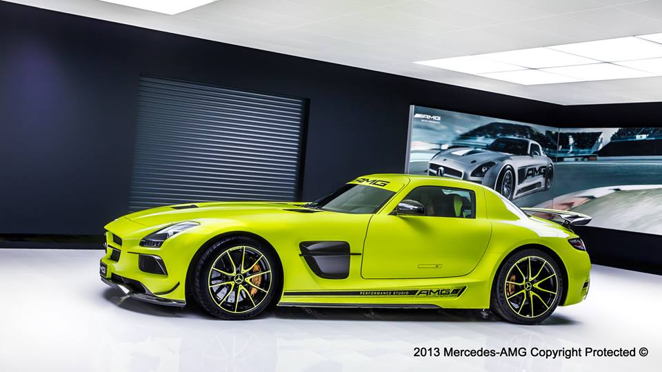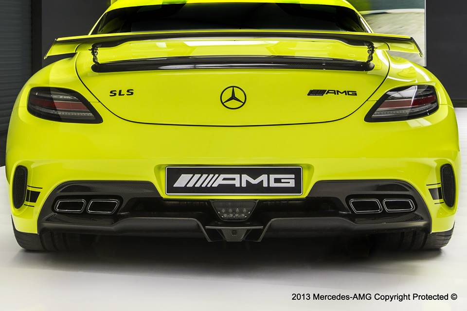 Mercedes a dat publicităţii primele imagini cu cel mai nou produs al AMG Performance Studio: un superb Mercedes SLS AMG Black Series unicat, creat special pentru un client norocos. Modelul este vopsit într-o nuanţă de galben exclusivă pentru acesta, căreia cei de la AMG nu i-au găsit încă un nume, motiv pentru care îi roagă pe fanii de pe Facebook să caute cel mai potrivit nume. De asemenea, jantele sunt vopsite în două nuanţe, una dintre ele galbenă, pentru a se asorta caroseriei. Modelul unicat mai are grafică pe lateral, stema Mercedes şi celelalte logo-uri vopsite în negru şi un interior în două nuanţe, negru şi acelaşi galben. La fel ca modelul de serie, acest SLS este dotat cu un motor V8 de 6.2 litri care produce 622 de cai putere şi 634 Nm cuplu. Maşina poate accelera până la 100 km/h în 3.5 secunde şi are o viteză de top de 315 km/h.