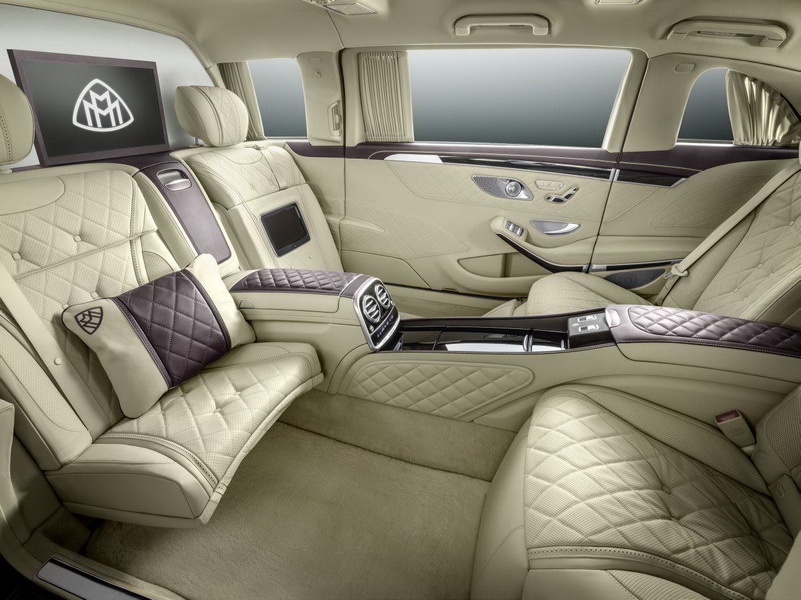 Așa cum era de așteptat, interiorul limuzinei este de un lux desăvârșit. Pasagerii spate beneficiază de două scaune tip fotoliu îmbrăcate în piele premium, dotate cu suport pentru picioare operat electric și al căror spătar se rabatează cu 43.5 grade. Aceste două fotolii sunt așezate față în față cu alte două scaune rabatabile, asemănătoare scaunelor din sălile de spectacole. Pentru intimitate sporită, compartimentul pasagerilor din spate beneficiază de „draperii”, dar și de o partiție din sticlă care separă compartimentul spate de cel față și care la apăsarea unui buton poate deveni opacă din transparentă. De asemenea, limuzina mai este dotată cu o consolă centrală care se întinde pe toată distanța compartimentului pentru pasagerii spate, inserții de lemn, un sistem de sunet 3D Burmester și un sistem entertainment cu un display de 18.5 inch.