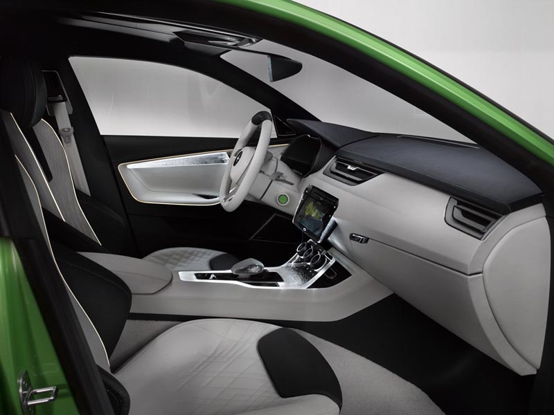 Interiorul este un preview a ceea ce trebuie să ne aşteptăm de la viitoarele interioare Skoda şi vine cu patru scaune individuale şi un ecran 3D customizabil, poziţionat în faţa şoferului.