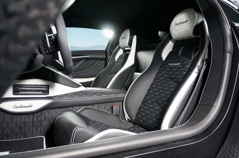 Pentru seria Carbonado, specialiştii de la Mansory au creat un nou design pentru fibra de carbon, în premieră mondială, inspirat de la avioanele de luptă invizibile.