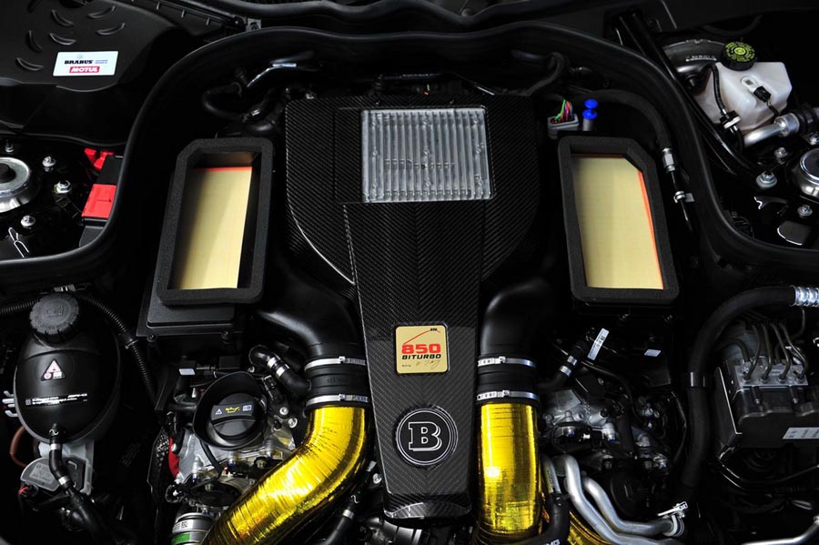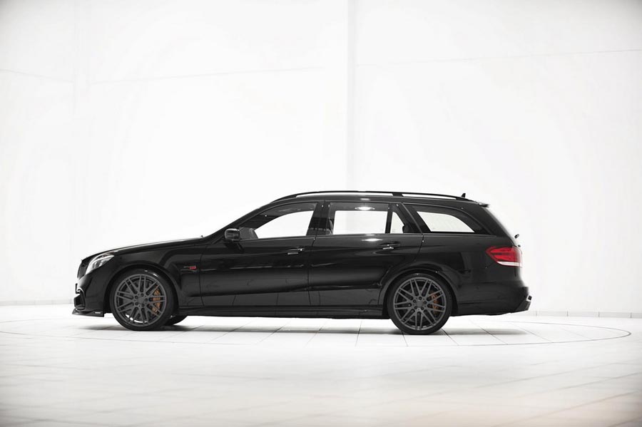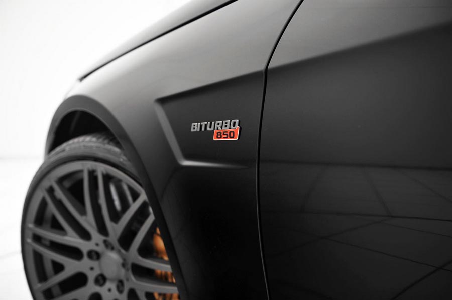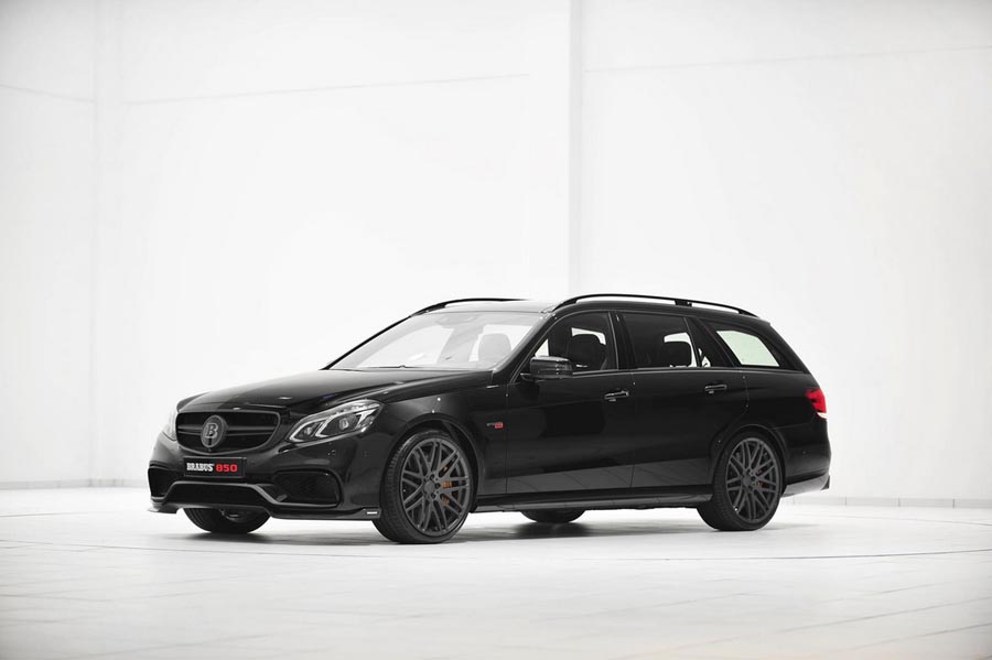 Compania de tuning Brabus a prezentat la Salonul Auto de la Essen ultima creaţie, Brabus E 63 AMG biturbo. Având la bază un Mercedes E 63 AMG model 2014, maşina transformată de Brabus are numai puţin de 850 de cai putere, faţă de cei 585 ai versiunii standard. Nemţii au luat motorul V8 biturbo de 5.4 litri şi l-au mărit până la 5.912 centimetri cubi, i-au instalat turbine speciale, cu compresoare mai mari şi galerii de admisie construite special pentru acest model. Cuplul imens obţinut, de 1.450 Nm, a fost limitat electronic la 1.150 Nm, pentru a păstra longevitatea motorului. Kit-ul celor de la Brabus este compatibil atât cu versiunea RWD cât şi cu cea 4MATIC şi permite maşinii să atingă 100 de kilometri pe oră în 3.1 secunde şi să aibă o viteză de top de 300 de kilometri pe oră cu cauciucuri normale. Clienţii care vor opta însă pentru cauciucuri speciale de performanţă vor putea accelera maşina până la o viteză de top de 350 de kilometri pe oră.